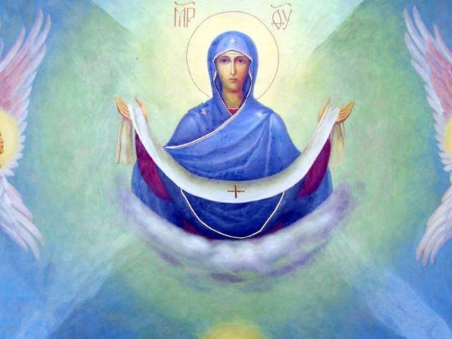 Это главный осенний праздник, история которого восходит к 910 году, к периоду, когда Византийская империя вела войну с сарацинами. В этот день в Константинополе (к которому уже вплотную подошли мусульмане), во Влахернской церкви, где хранилась риза Богоматери, во время богослужения юродивый Андрей и его ученик Епифаний увидели парящую в воздухе Богородицу, которая распростерла над молящимися свое широкое белое покрывало — покров.