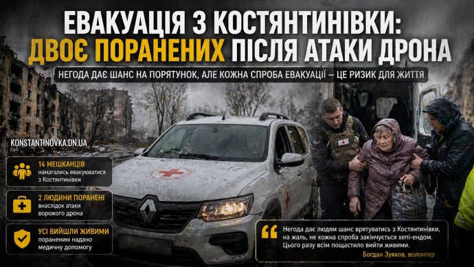 Ситуація в Костянтинівці залишається вкрай напруженою, логістика та вихід із міста контролюються ворожими дронами, що робить кожну спробу евакуації смертельно небезпечною.