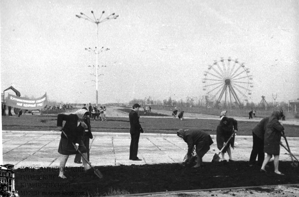 На цьому знімку, зробленому під час суботника 1975 року, бачимо, що перше колесо на цей час вже було встановлено.