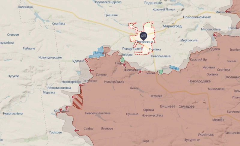 Изменения подтверждены на обновленной карте боевых действий, где видно, что российская армия закрепилась на новых позициях в направлении Константиновки и Покровска.